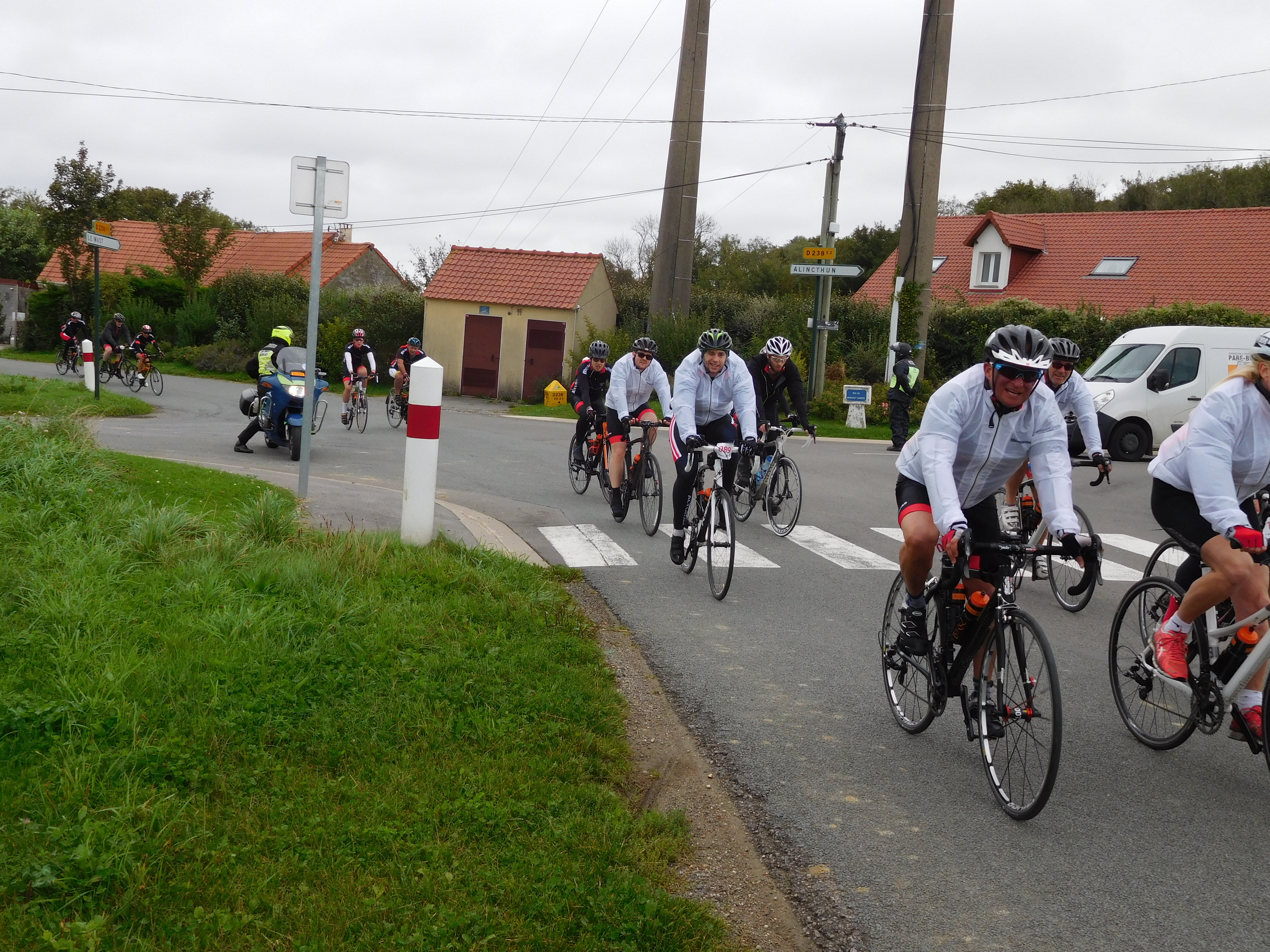 We pedalled back out onto Avenue Winston Churchill, our destination Paris. It’s a gentler ride on Day Four and it’s the shortest, That’s not to say there aren’t a couple of hills at the start. After lunch there’s a treacherous descent which was the scene of one rider having a very bad fall last year.