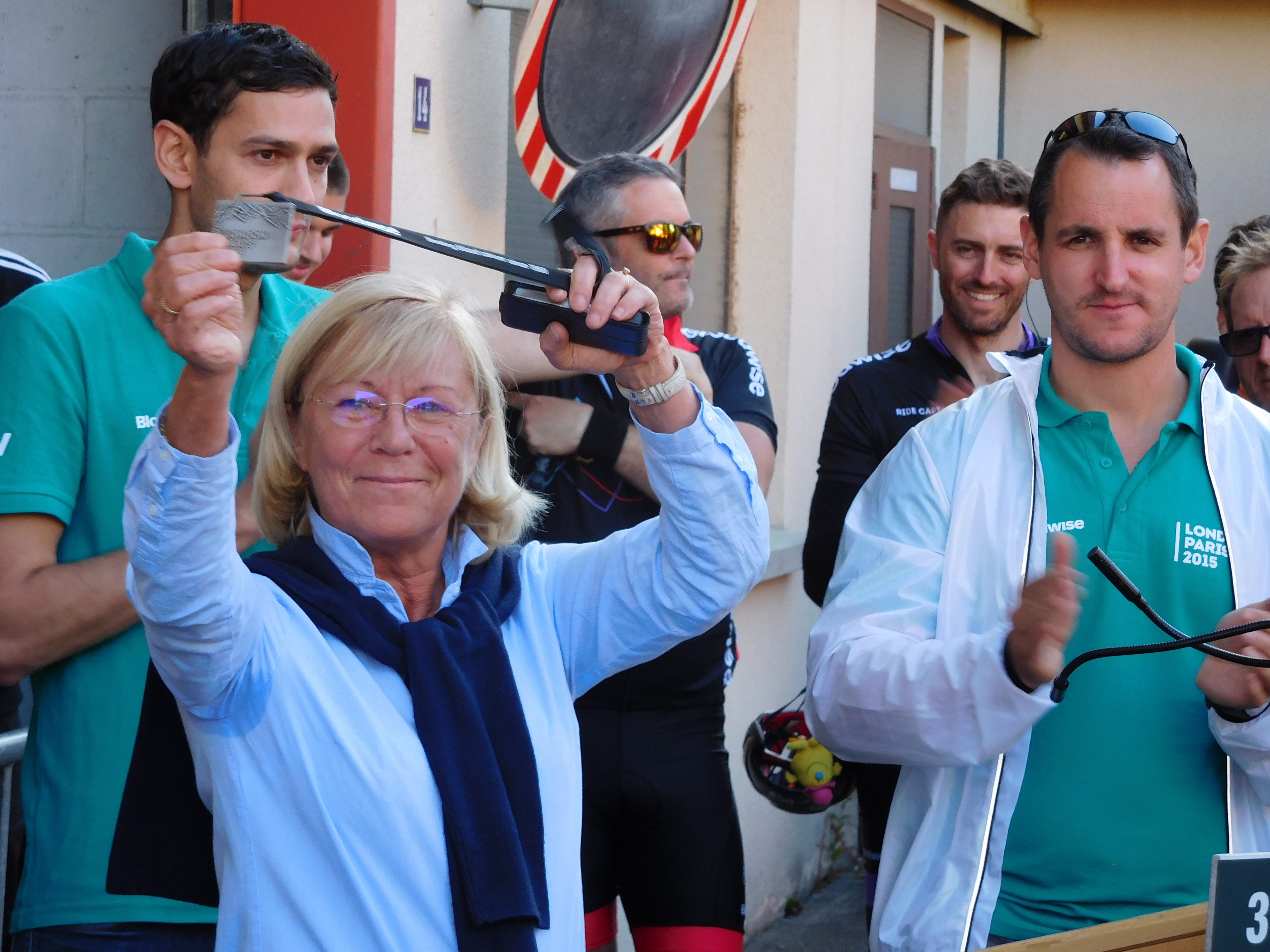 The Cyclevox film crew was buzzing around everywhere getting the shots they needed for the parody video of Taylor Swift’s ‘Shake It Off’. Jacqueline and me had been shrinking violets when it came to the ‘Happy’ video in 2014, so we did our best to get our faces in front of the camera when we could. Our efforts were rewarded. When the video was aired during the Paris dinner, we appeared pedalling along singing part of the chorus.