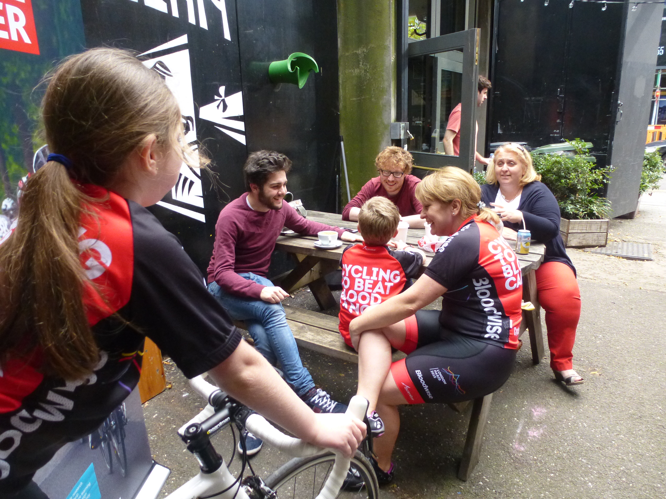The hubbub at Greenwich was infectiously exciting (and somewhat unsettling) as the gathered riders got on with jittery last minute preparations. We spotted familiar faces in the crowds. Bloodwise organiser Bekah sporting a multi-coloured wig got us all in the right frame of mind.