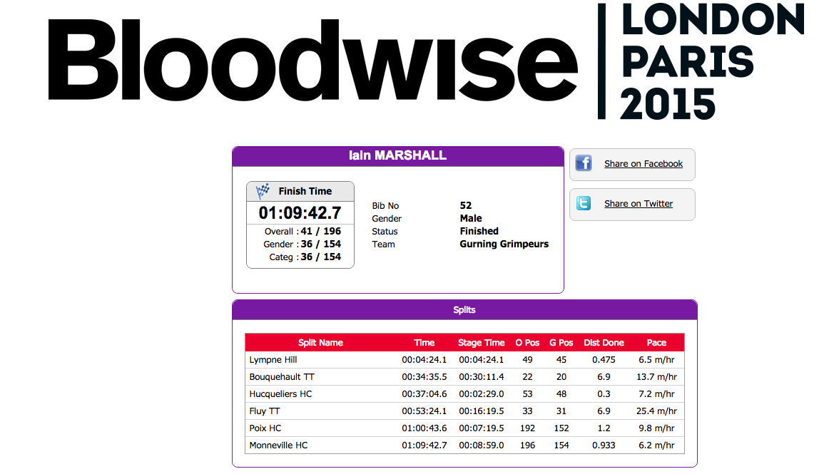 Was it really a year ago that we rode from London to Paris for Leukaemia and Lymphoma Research? Now renamed Bloodwise, the charity has Gurning Grimpeur support again in 2015.